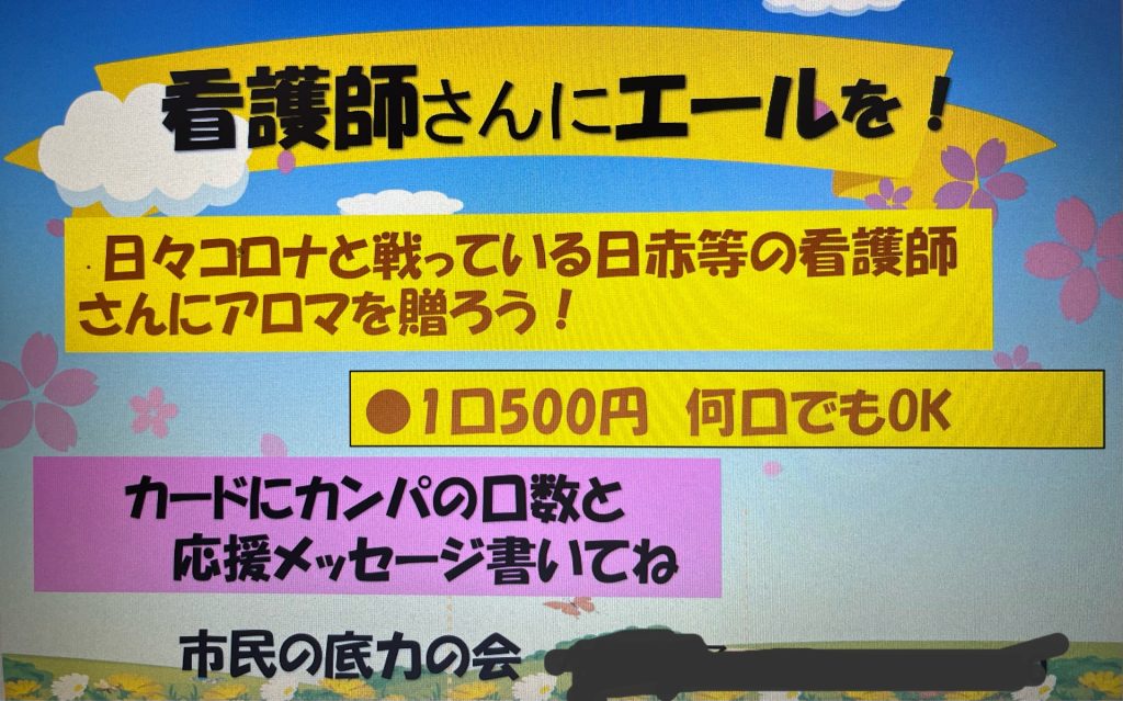 地域みんなから、応援しているよ!の気持ちが籠った募金をして、その結果としてアロマをプレゼントしたいと思いました。