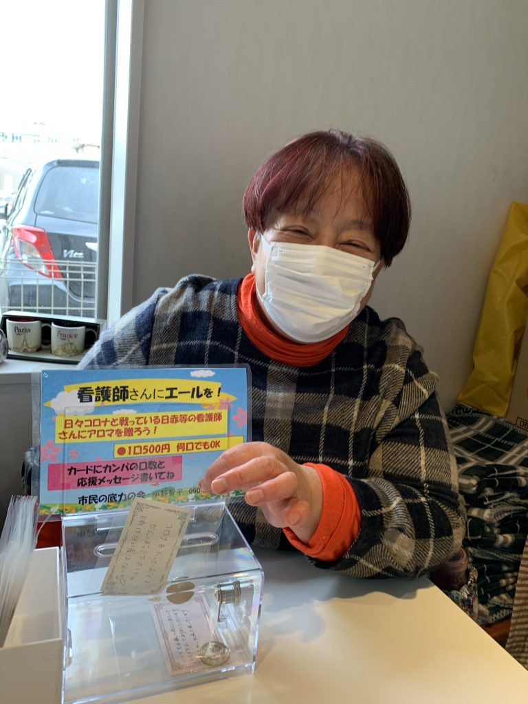 (看護師にアロマオイルを寄贈)